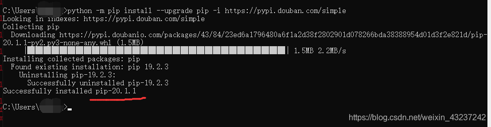 python -m pip install --upgrade pip -i https://pypi.douban.com/simple