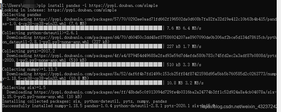 pip install pandas -i https://pypi.douban.com/simple