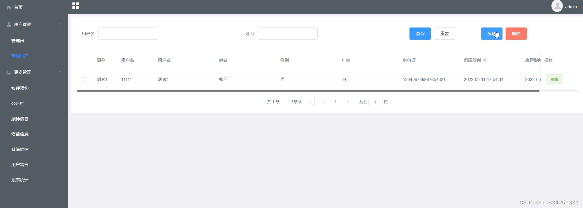 SpringBoot+Vue项目小区疫苗接种管理系统的设计与实现