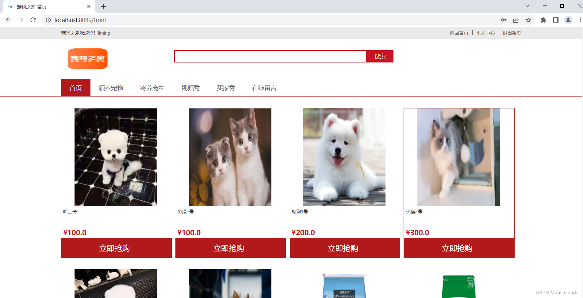 Java项目:宠物领养寄养商城系统(java+Springboot+HTML+bootstrap+mysql)