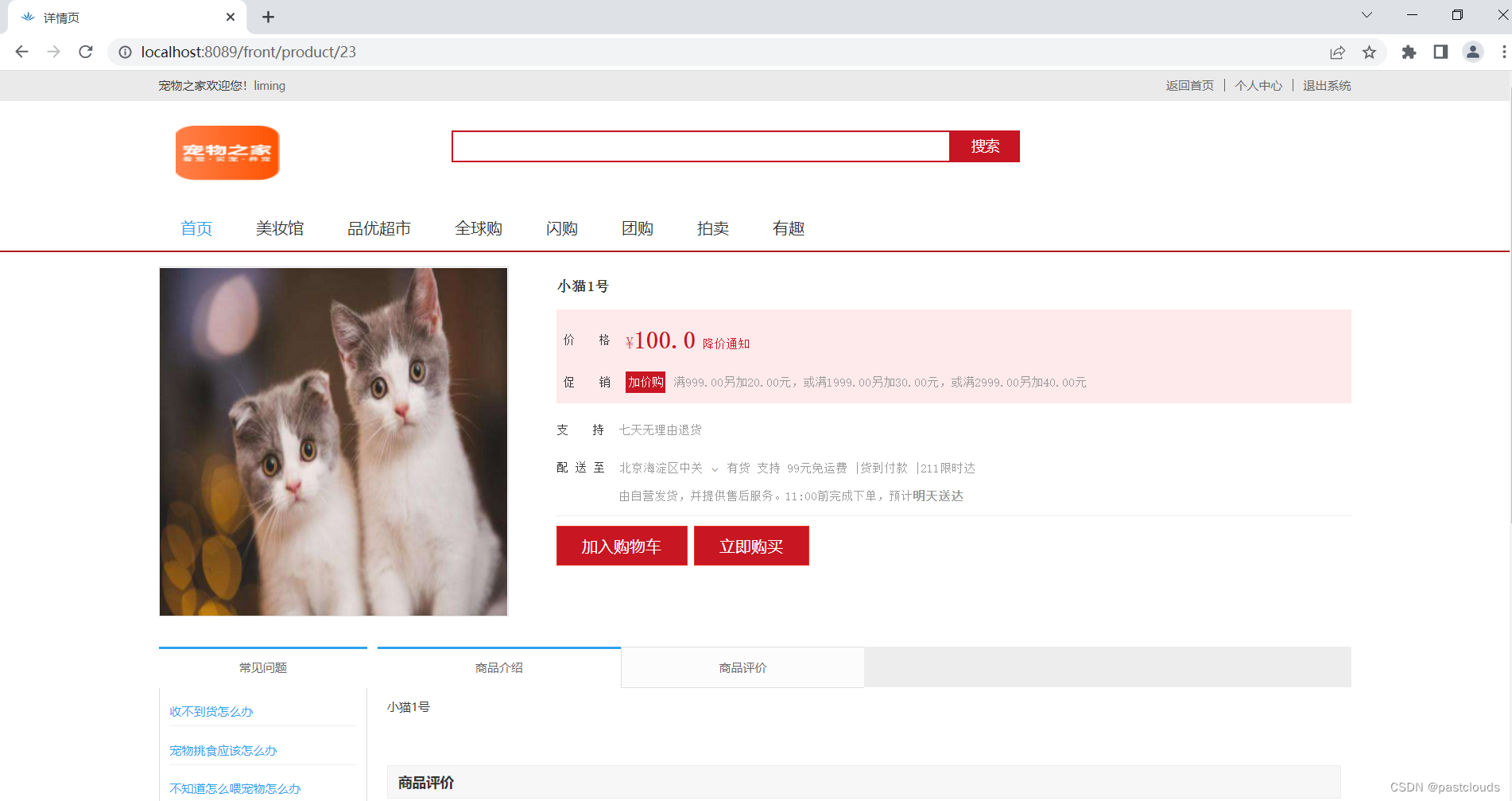 领养宠物、寄养宠物、视频秀、买家秀、在线留言、加入购物车、