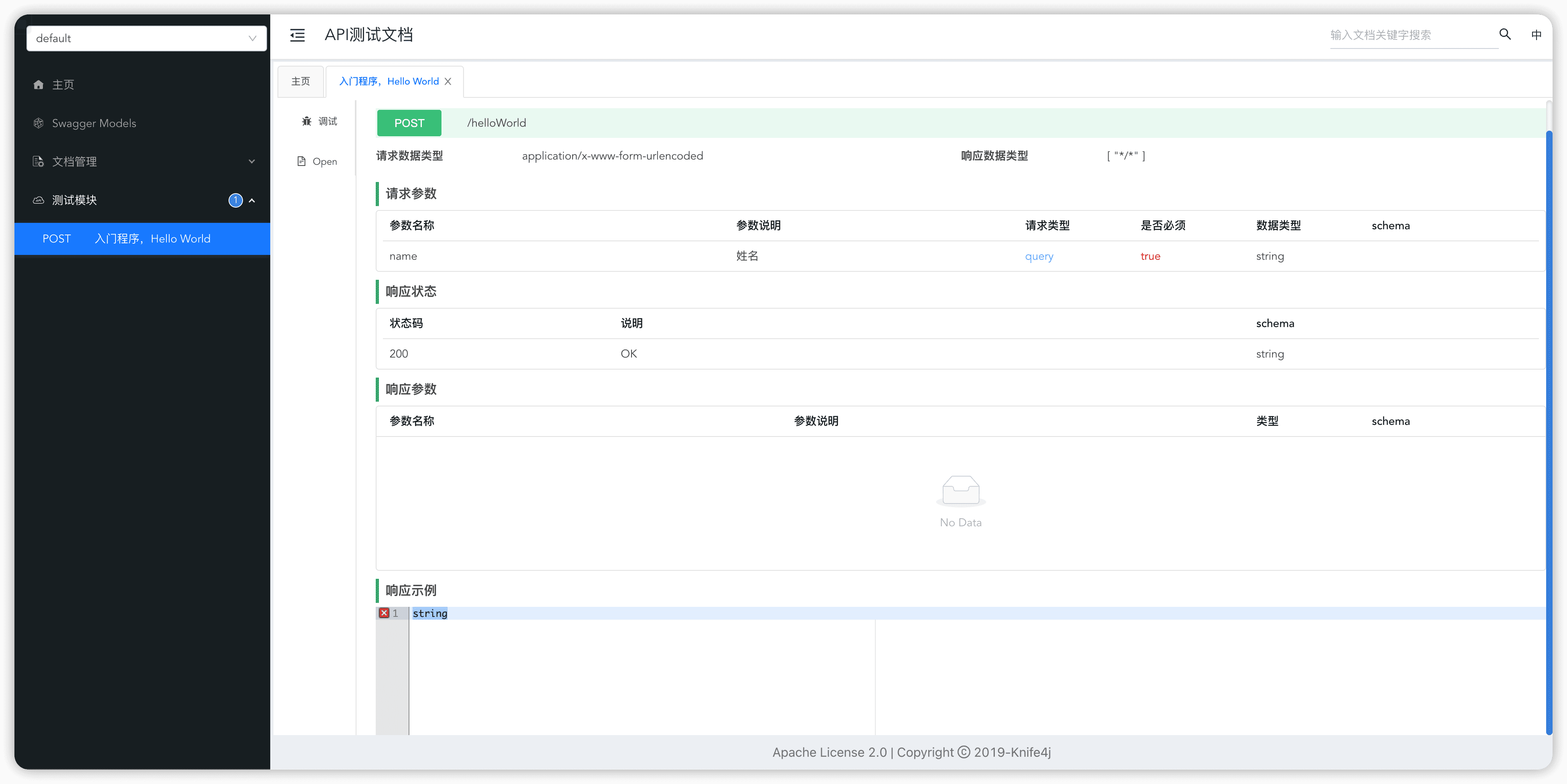 打开具体接口,这里就有我们接口的请求和响应的一些情况说明。