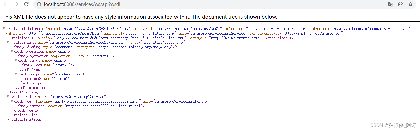 所以wsdl的连接为:http://localhost:8080/services/ws/api?wsdl