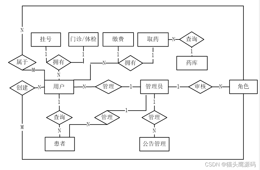 门诊模块:门诊医生通过门诊队列得知挂号患者,医生填写电子处方开药并填写医嘱,提交门诊信息,待缴费取药。