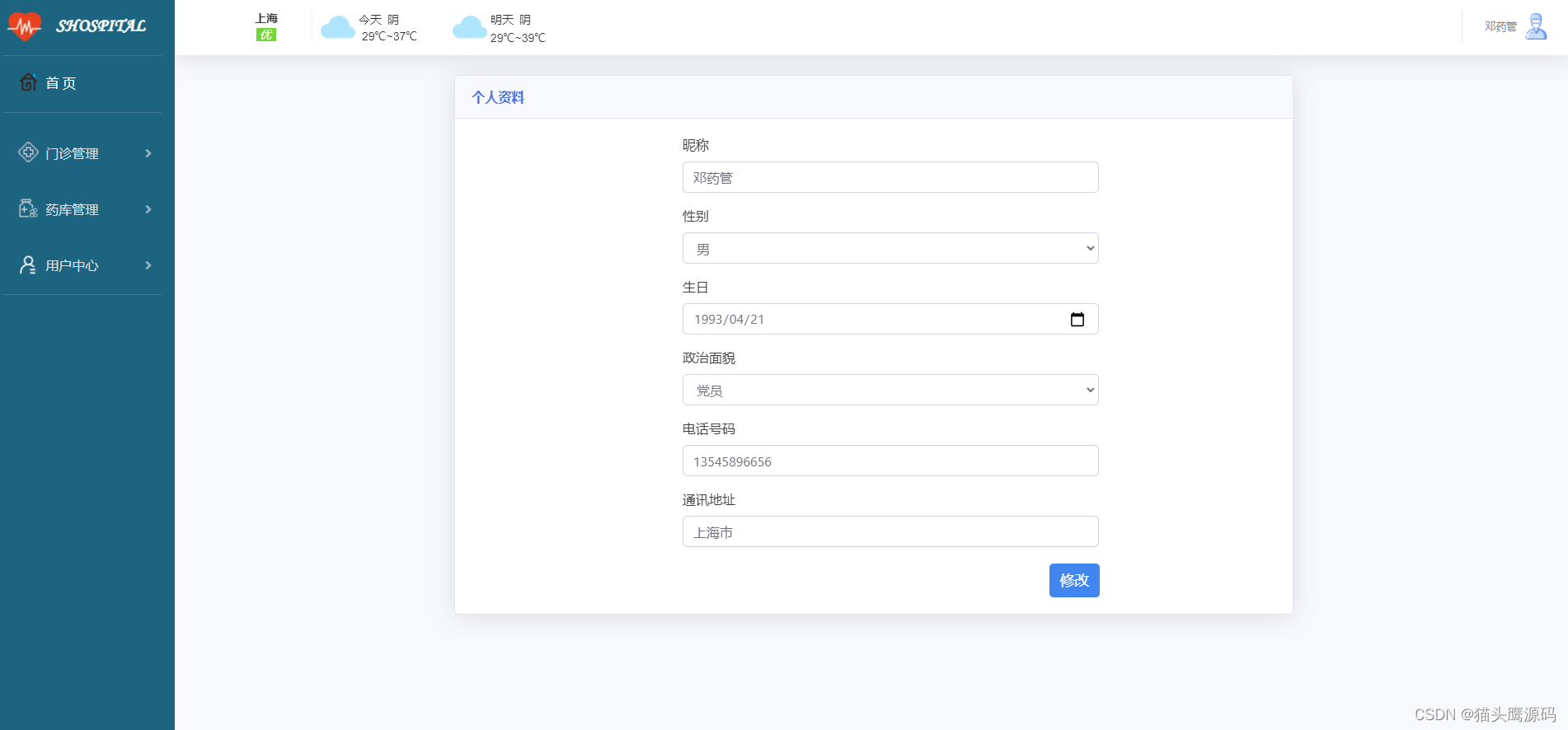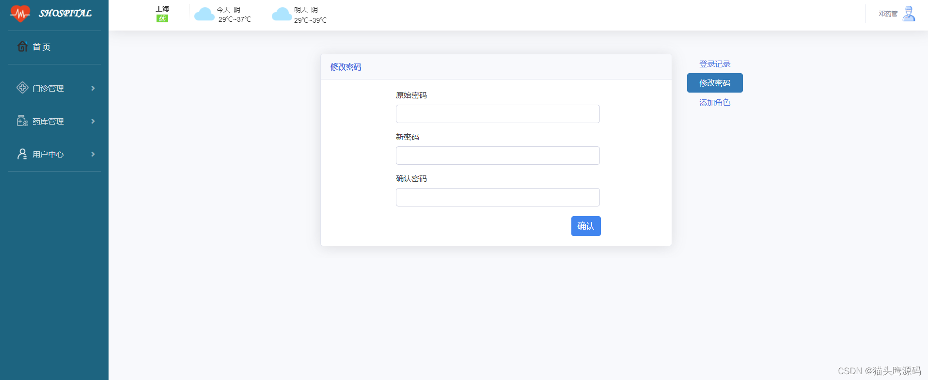 每个人员都有用户中心,可以修改信息和密码,也可以加角色