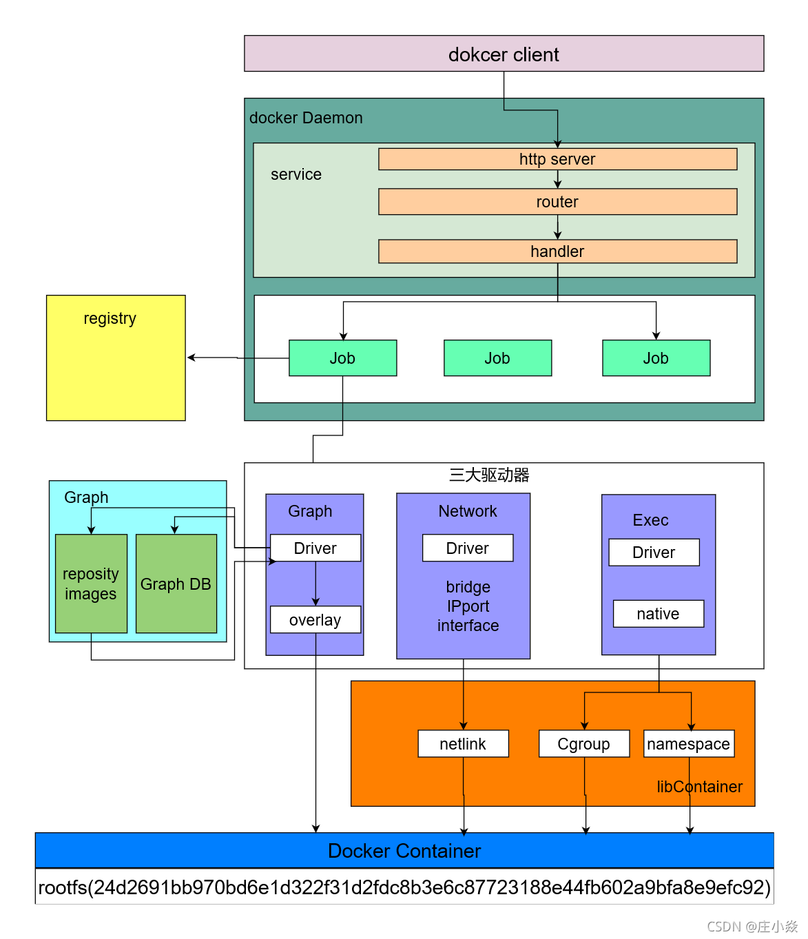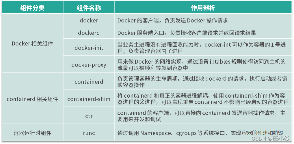 - Docker 相关的组件:docker、dockerd、docker-init 和 docker-proxy