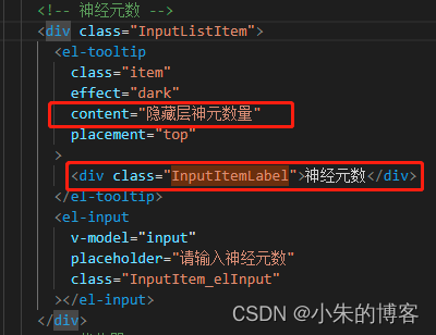 1.我在"element-ul"组件上找到这个"Tooltip 文字提示",然后把组件当中的button按钮换成我自己div包裹的"神经元数",里面的"content",写的就是鼠标移入到"神经元数"上展示的文字.