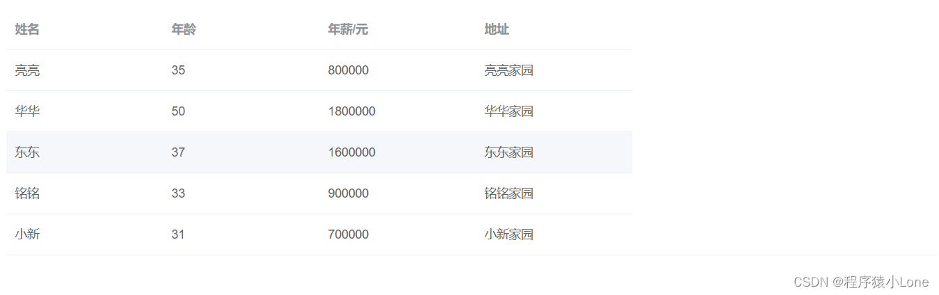 首先,把表格的数据填一下,弄一个表格包含五个人,就是一个数组长度为5,5个对象(名为people),然后每个对象包含姓名、年龄、年薪以及住址(纯属虚构,如有雷同纯属巧合)。