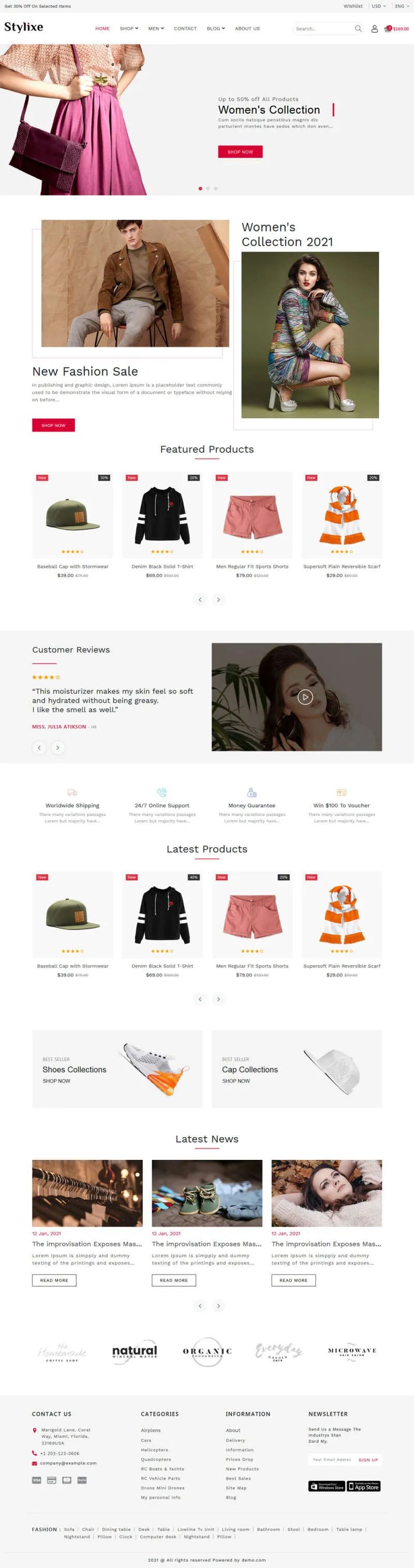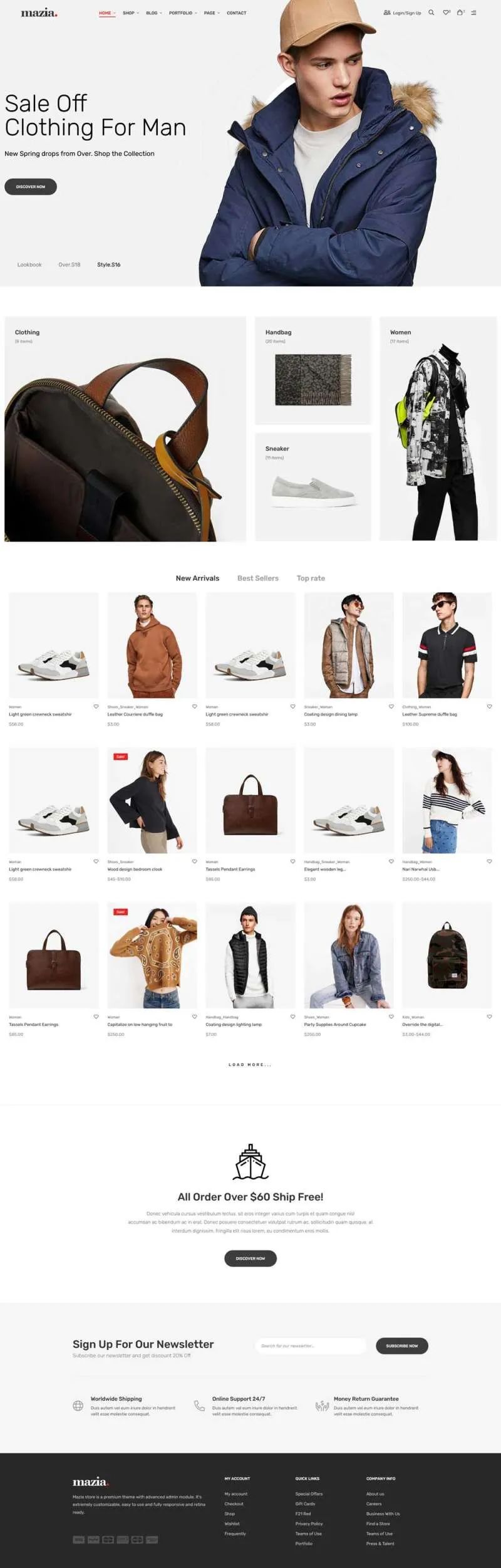 包含31+个HTML网页,总共包括8+个主页变体、6+个店铺布局、6+个产品布局和其他重要的内页。