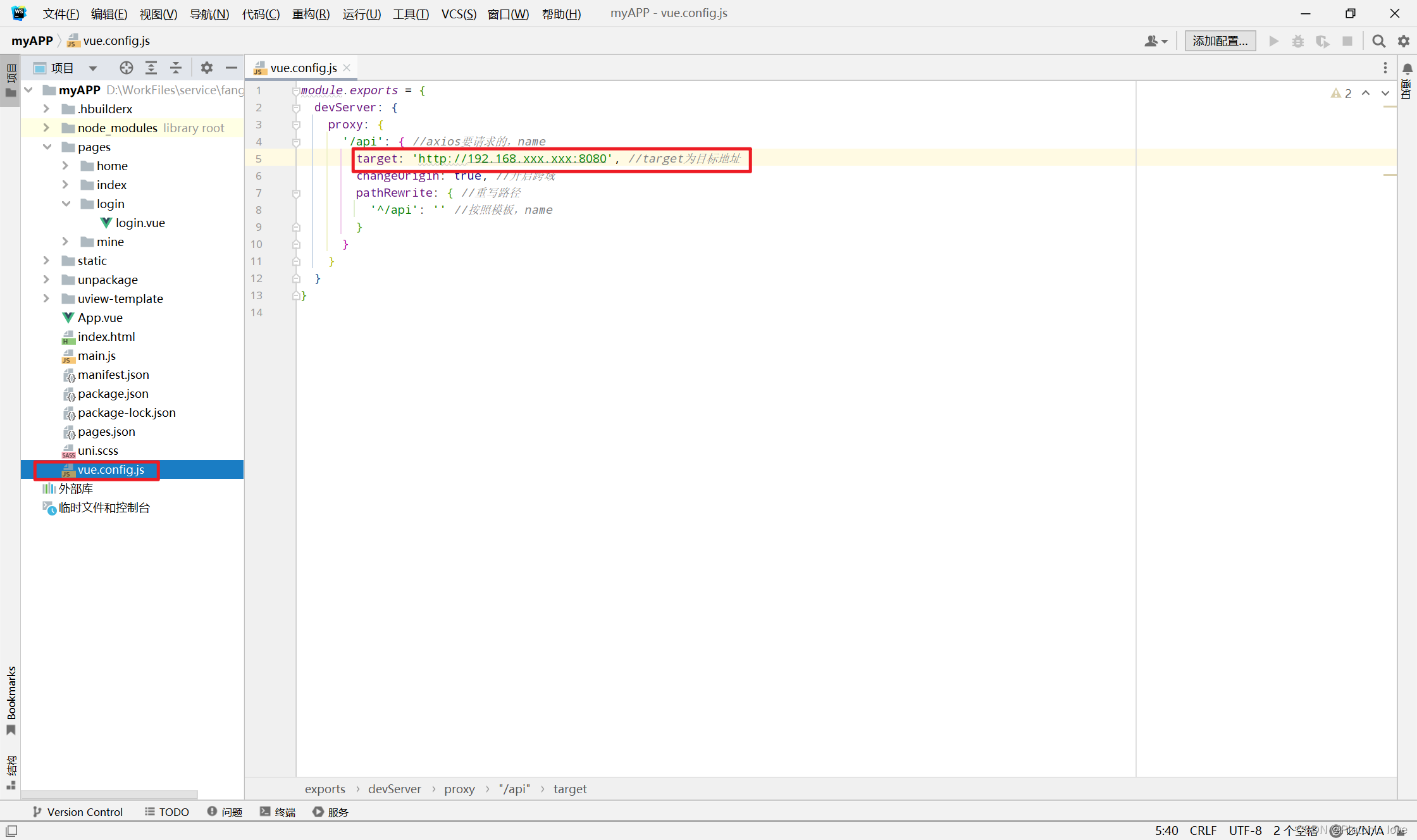 target: 'http://192.168.xxx.xxx:8080', //target为目标地址