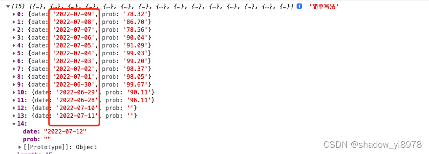 可以看到数组并没有按照我想要的从6月28日——7月11日进行排序。
