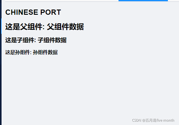 1、父传子,在父组件里面的子组件上通过v-bind绑定一个变量传给子组件,对应的子组件里面通过props来接受;