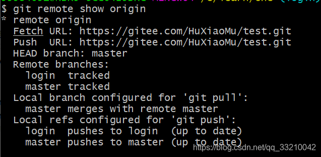 2 git remote show xx (xx为远程地址的别名) 显示某个远程仓库的信息