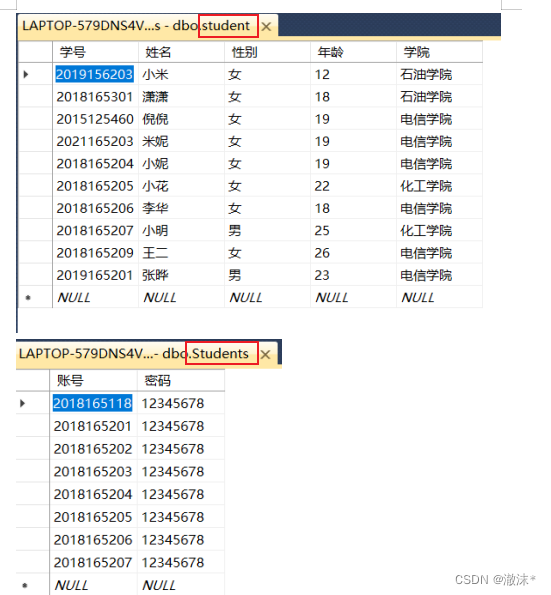 有两张表,一张为Students为用户表,一张为student为信息表