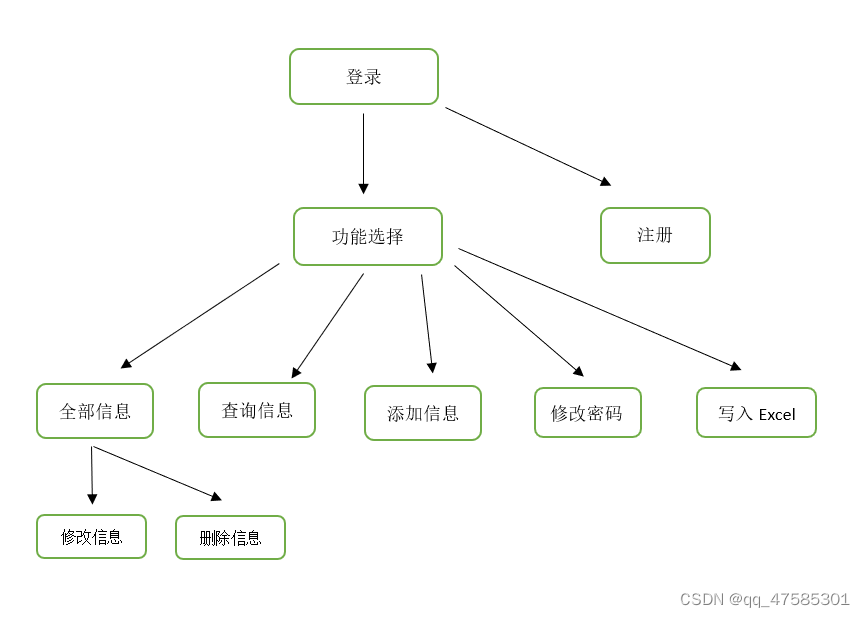 3.系统以菜单方式工作,包括信息的录入、浏览、查询、修改、删除、退出等基本功能。