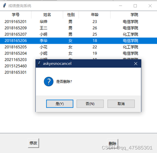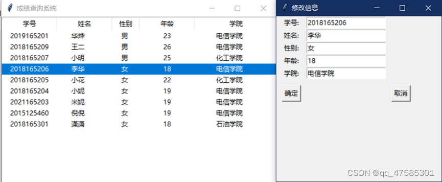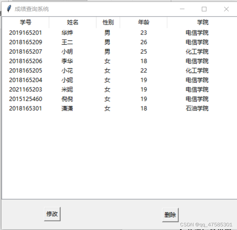 3.显示所有学生信息,并且修改、添加、删除