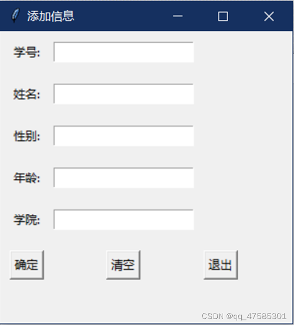 2.录入学生的信息:学号、姓名、性别、年龄、学院