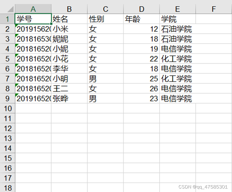 5.将学生信息写入Excel表格