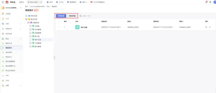 访问华为云CodeArts TestPlan,进入到测试设计后,如下图,选择“模板新建”。