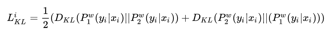 模型的训练目标包含两个部分,一个是两次输出之间的KL散度,如下: