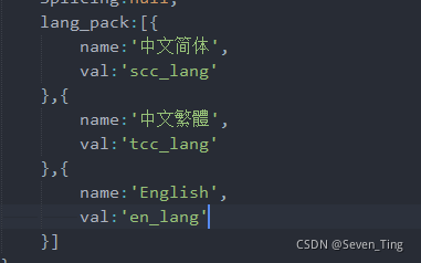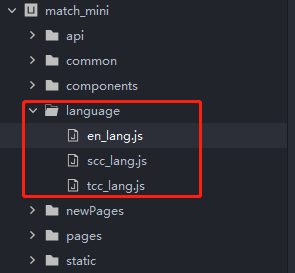 1.在列表中新建一个语言文件用来放自己创建的语言包.语言包里放3个.js文件,用于存储中文,繁体,英文三种语言文件.