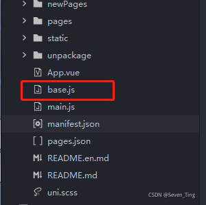3.在列表内新建一个base.js文件,用于项目中的语言切换