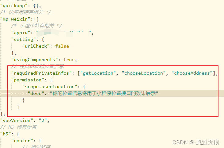 2.1在uni-app/manifest.json/微信小程序/勾选位置接口填写使用说明
