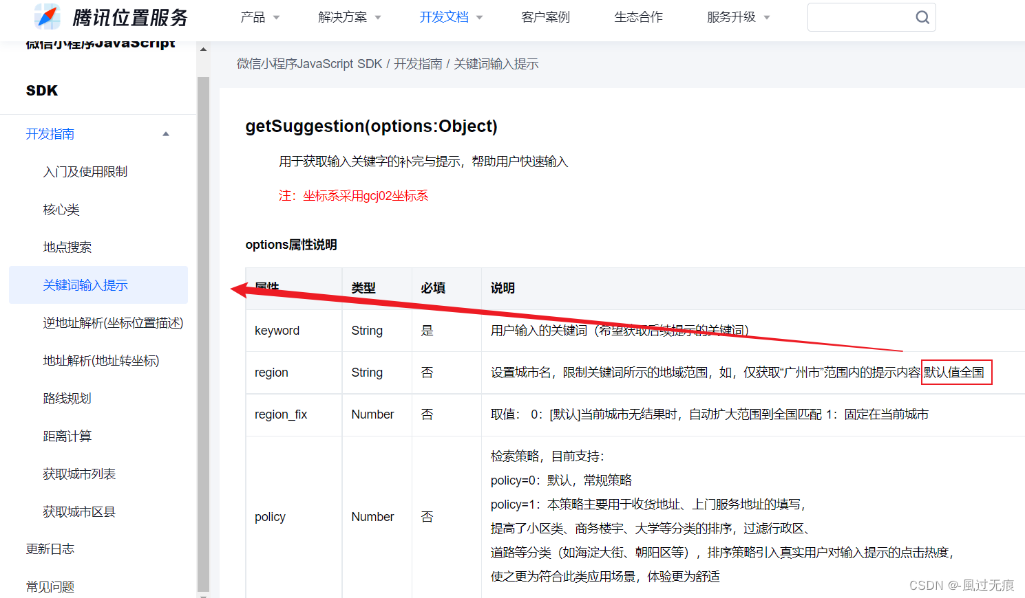 他们2个搜索结果差不多都是默认10条,只不过关键词输入提示回来的结果是有地址的,但是我是一进到页面授权之后使用uni-app uni.getLocation()获取坐标。因为内置就是腾讯,所以可以直接传值使用。因为地点搜索的区域是坐标,不设置就是地图默认的坐标。这样一来我就可以不设置使用uni-app自带定位传值更合理,把它结果渲染成联想值,点击跳转。关键词输入提示,默认搜索区域是全国,设置只能是中文字,这样的话我们就要使用uni.getLocation()获取完地址之后,使用逆地址解析获取城市,这样代码会多很多,api也调用多次,不合理,所以我使用地点搜索。下面有图