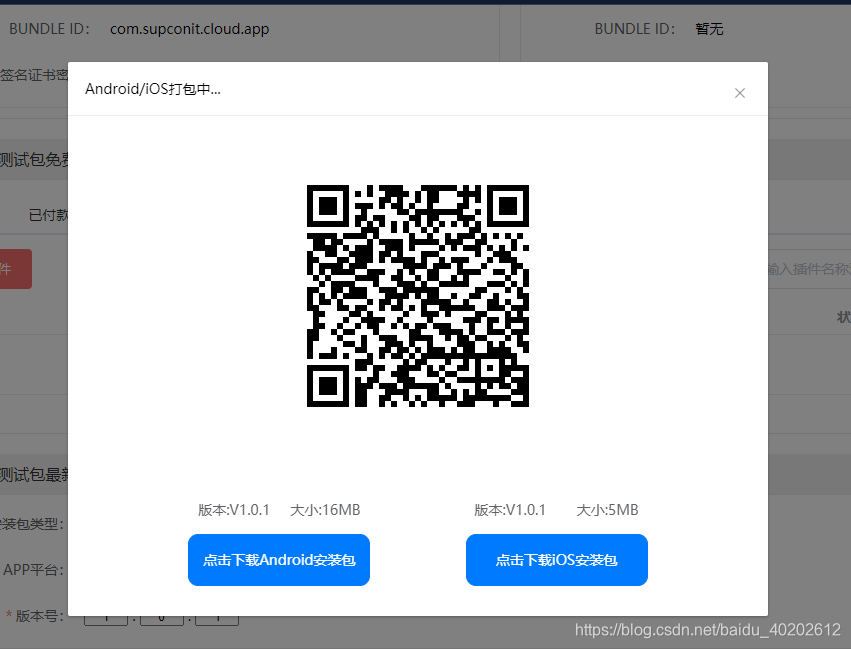 点击进入可以看到刚刚配置的所有信息,并且可以进行修改操作,确认无误之后,点击下方 "打包" 按钮,等待打包完成扫码下载即可。