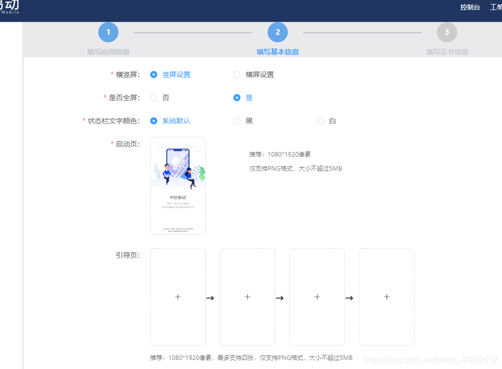 设置横竖屏、页面是否全屏、状态栏字体颜色、启动页和引导页,不想设置的话可以直接下一步即可