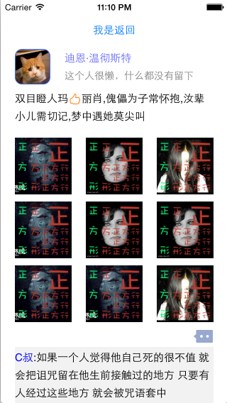 假设我们要开发一个像微信朋友圈或者微博这玩意儿的东西,并且要有能隐藏和展开正文、正文中能够识别富文本(网址、电话、@姓名……)、还要有图片缩略图而且点击查看、能够有回复、回复文中也要支持富文本……这些功能。像这样
