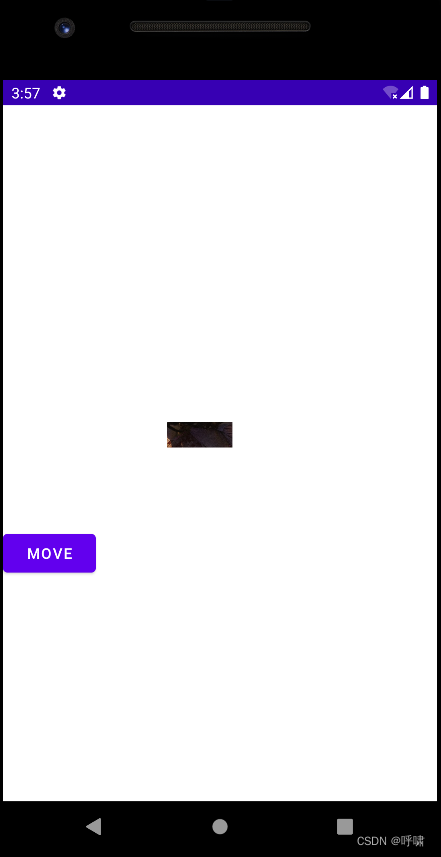 需要注意的是,view动画,并不能改变view的位置参数。所以我们点击Button并不会触发,因为他的负控件要先判断点击事件是否在子view的位置参数范围内才会分发给他,当我们点击原来的位置的时候,才会响应。如果我们想让他在移动后的位置响应,也就是说更改view的位置参数,那么可以使用属性动画。