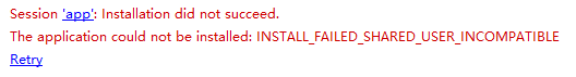 安卓安装:INSTALL_FAILED_SHARED_USER_INCOMPATIBLE错误