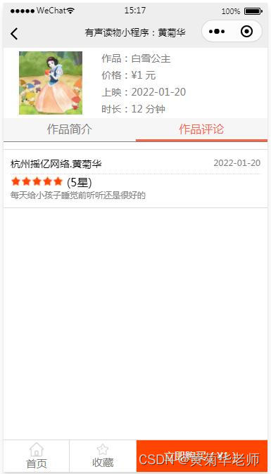 有声作品信息: 点击到有声作品详情页面,可以查看有声作品的封面、价格、上映时间、时长、有声作品介绍等