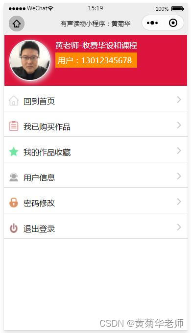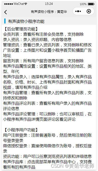 本次我们开发的微信的有声读物小程序系统,用户通过手机登录小程序,可以浏览和查询有声读物的目录,详细介绍,进行收藏、评论、在线听等功能。