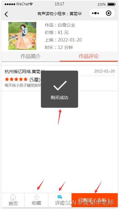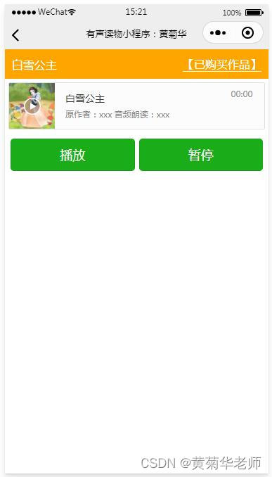 有声作品购买:在有声作品信息详情,点击立即购买,模拟假设购买成功