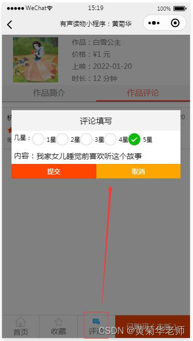 有声作品评价:登录用户,在有声作品信息页面底部,购买用户可以点击评论,弹出评论页面,填写后提交;管理员审核后可见