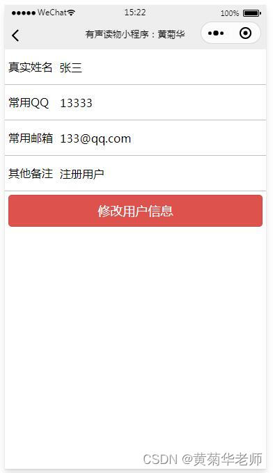 用户信息:填写姓名、qq、邮箱、备注等信息