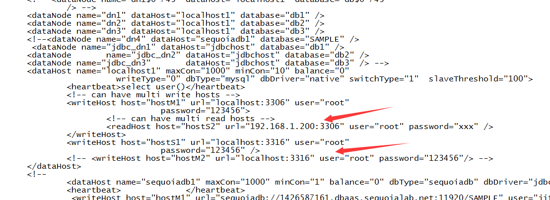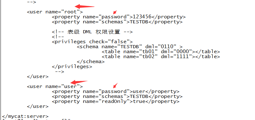那mycat的默认账号和密码呢?查看server.xml文件cat server.xml
