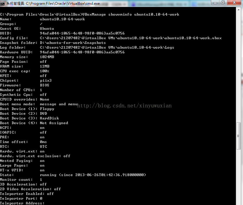 VBoxManage showvminfo <uuid>|<name> 显示指定虚拟机的信息