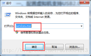 步骤1:使用快捷键【Win + R】,在对话框中输入"services.msc",确定,打开windows服务管理器;