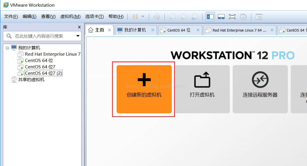 - 打开VMware,在主页选项卡下点击创建新的虚拟机:
