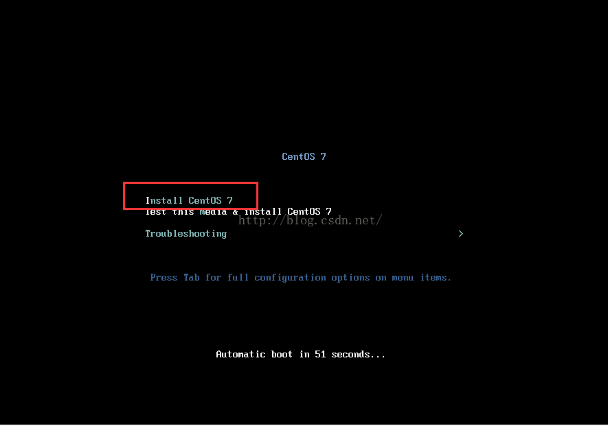 - 开始安装CentOS,直接点击Install CentOS 7,回车即可: