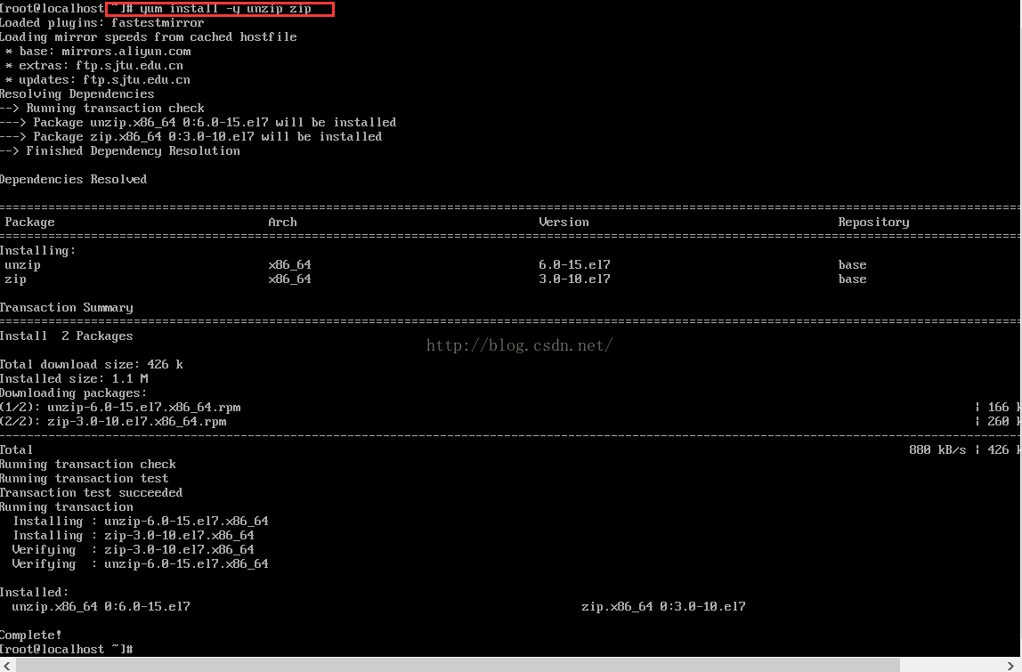 PS:再举个例子,unzip/zip: Command Not Found 安装unzip: