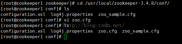 - cd /usr/local/zookeeper-3.4.8/conf/ 下,可以自己创建一个zoo.cfg或者将zoo_sample.cfg修改为zoo.cfg:我这边新建了一个并设置以下参数: