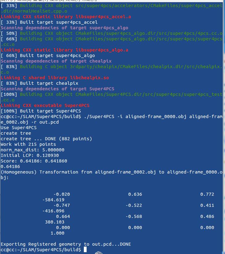 正常来说,应该不会出现什么问题了。在build文件夹中生成可执行文件Super4PCS