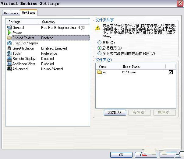 1、linux虚拟机点击设置里边,选择“options”选项卡下的“shared folders”。会出现下图: