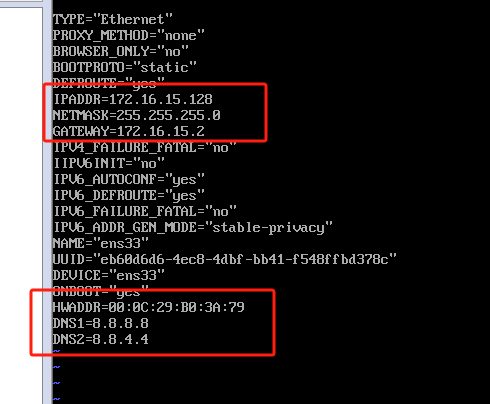 vi /etc/sysconfig/network-scprits/ifcfg-ens33