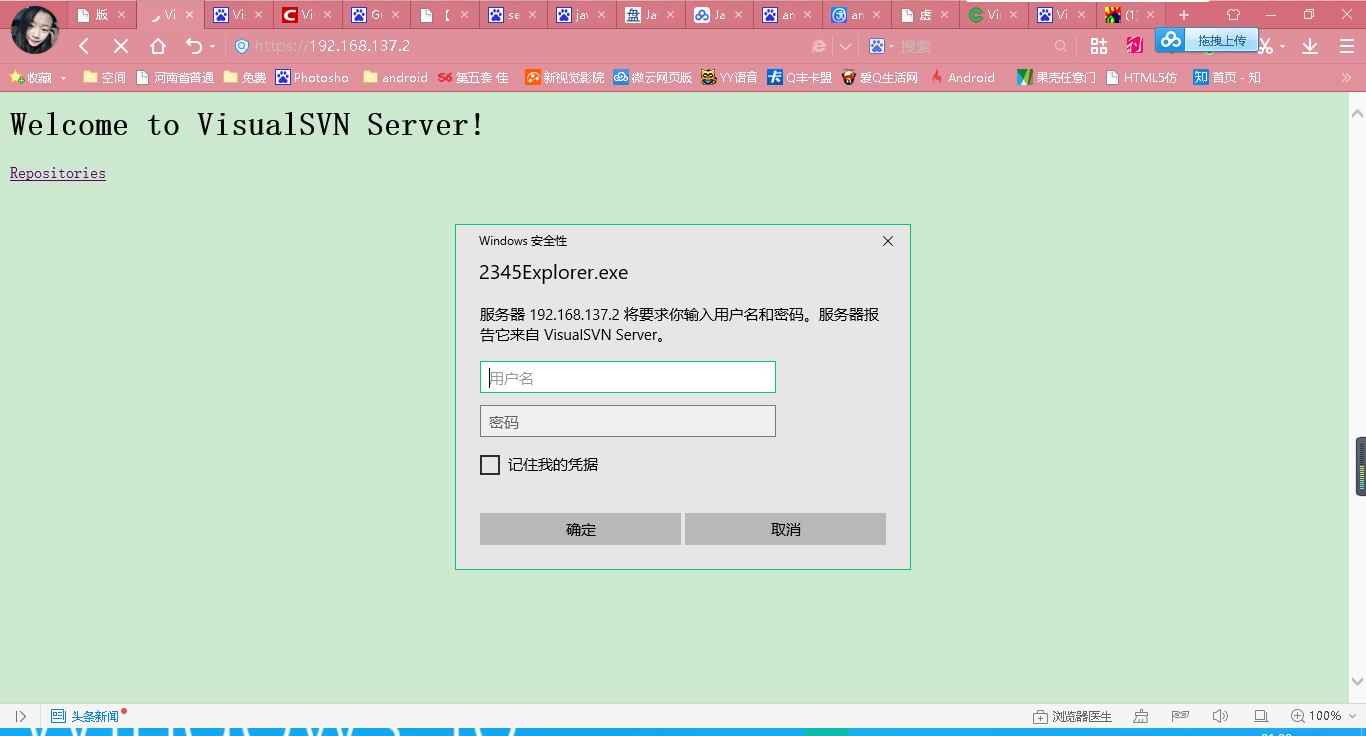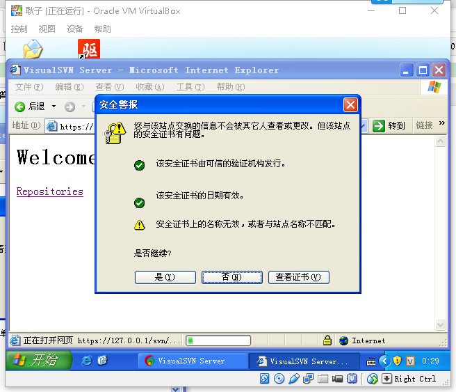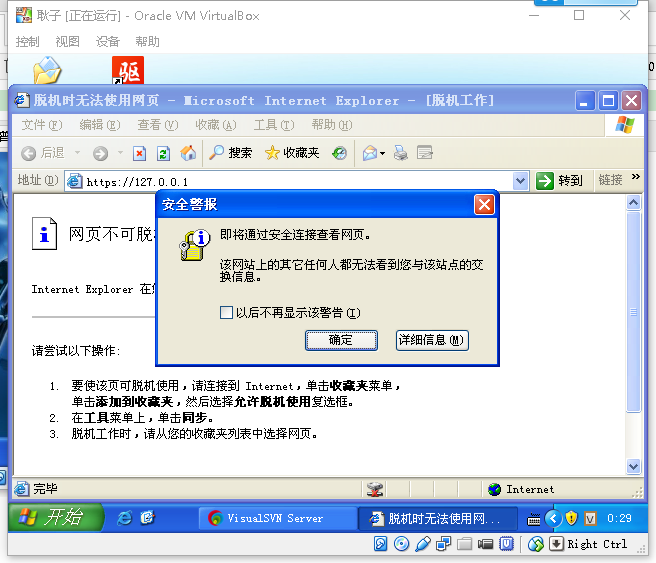 打开我们的SVN 软件, 在虚拟机的浏览器中输入: https://127.0.0.1
