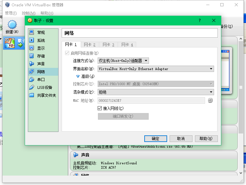 VirtualBox 主机与虚拟机互相访问且均上外网